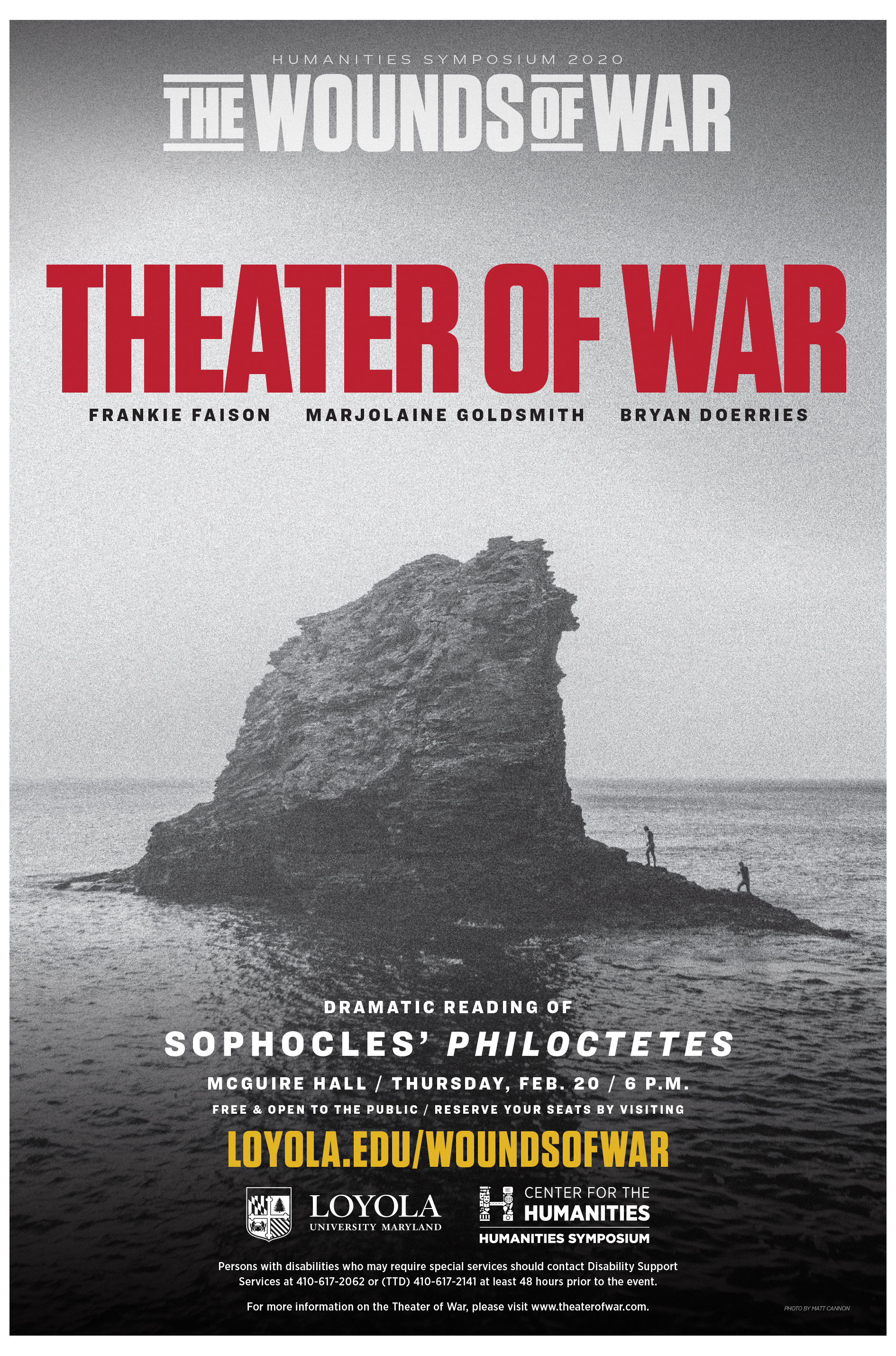 One of the challenges presented by the creative brief was to not glorify war or exploit the horrors of war. The pair of events each needed a unique image that shared a creative approach. I chose grainy black-and-white photography and a common typographical solution. Faced with no budget I read Philoctetes and Redployment and started exploring free resources on the internet.