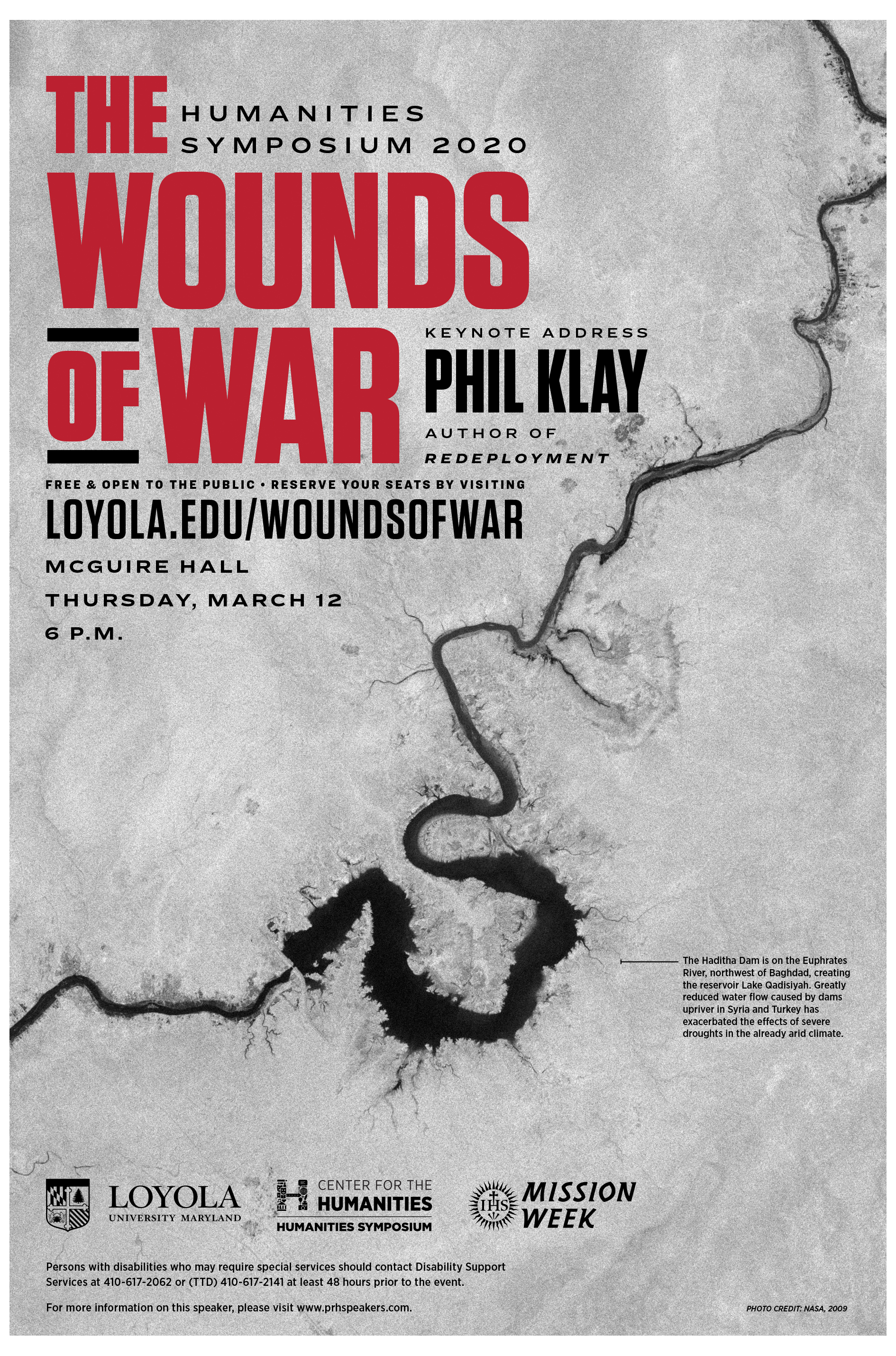I chose a NASA photo of Lake Qadisiyah northwest of Baghdad. In black and white, the Euphrates River appears like a tectonic crack—two mute forces grinding against each other. The water flows black like oil, confusing the motivations for the war and the most basic unmet needs of humanity.