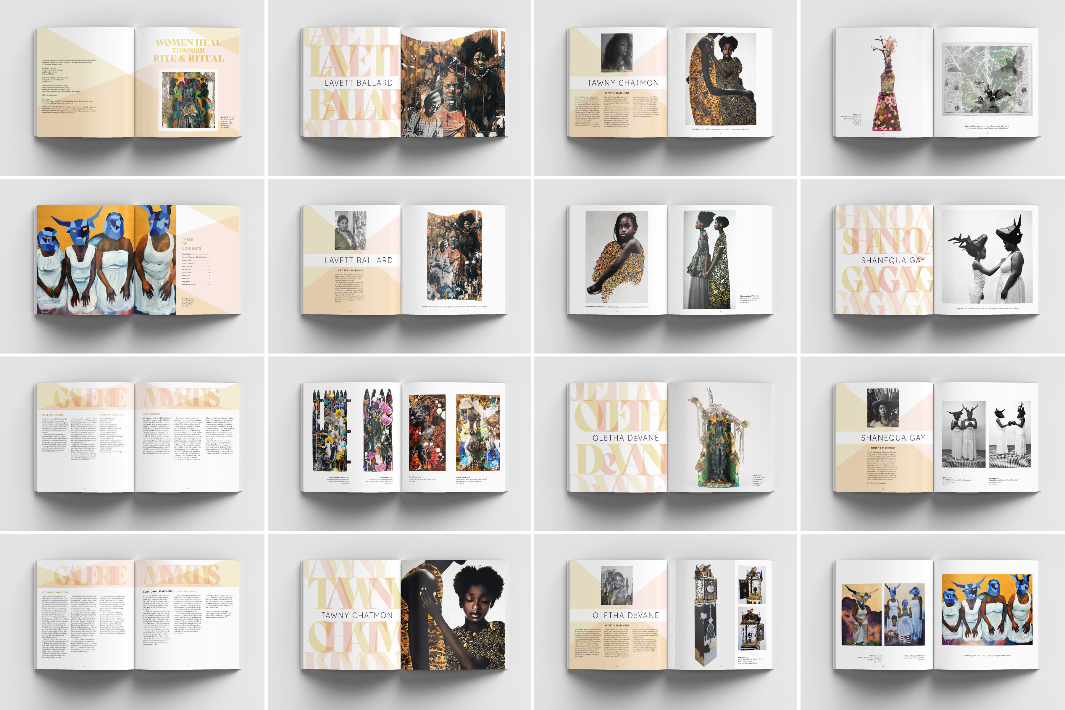 I would like to thank my wonderful client, Myrtis Bedolla, and the incredible artists in the catalogue: Lavett Ballard, Tawny Chatmon, Oletha DeVane, Shanequa Gay, Delita Martin, Elsa Muñoz, and Renée Stout.